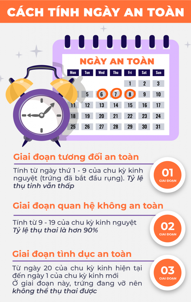 - Để đảm bảo an toàn, thời gian không có khả năng thụ thai được tính lùi 2 ngày sau ngày phóng noãn.