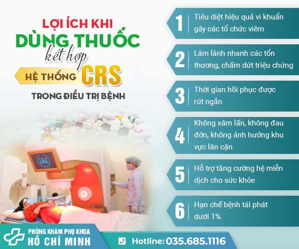 Phương pháp này không chỉ tiêu diệt vi khuẩn gây viêm mà còn tăng cường lưu thông máu, đẩy nhanh khả năng hấp thụ thuốc và rút ngắn thời gian phục hồi. CRS còn giúp ngăn ngừa tái phát, mang lại hiệu quả điều trị cao hơn so với phương pháp truyền thống.